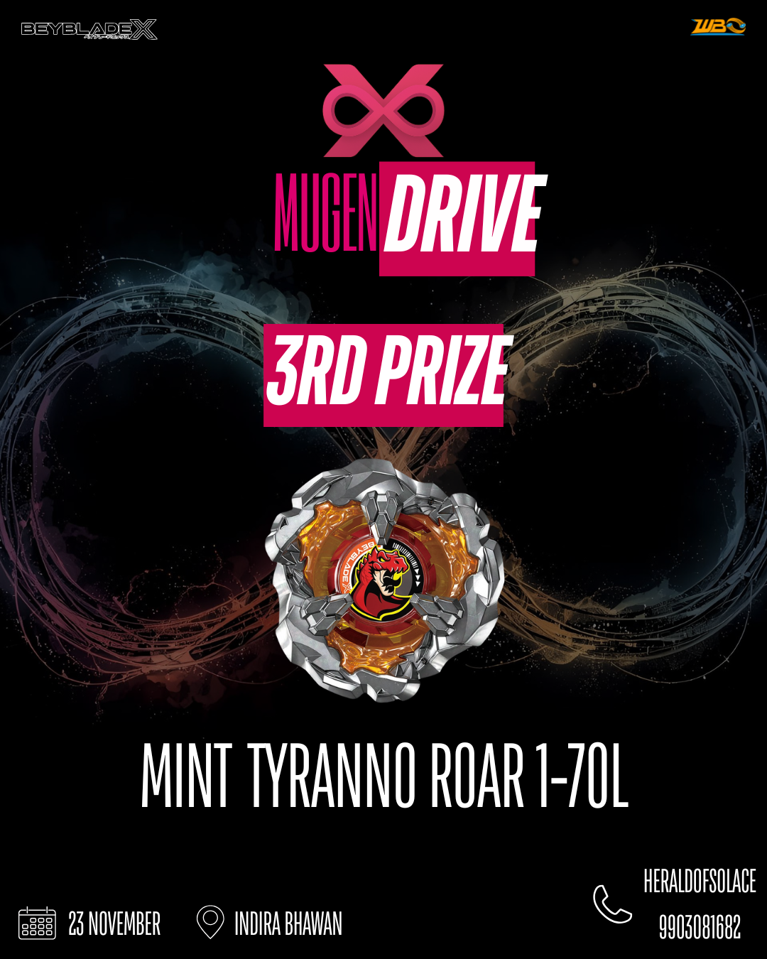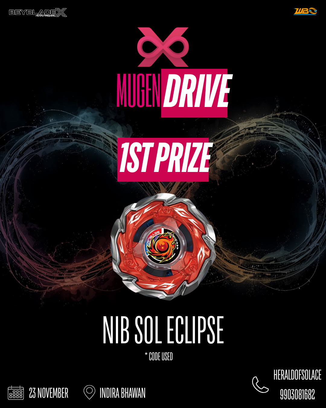 Enter the arena where legends are made. Mugen Drive is the India’s first Beyblade tournament in the Infinity Stadium. If you crave speed,  and dominance, and watching your beys dance on the Xtreme line, good news: now there are two of those. Every launch counts, every spin defines your legacy. Only the strongest will rise — the rest will fade into the dust.